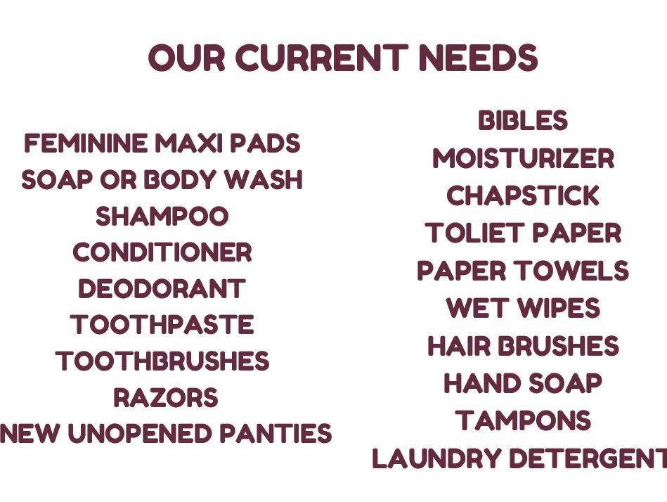 Our blessing boxes contain much needed hygiene items for women in our area. We are always in need of products to fill these boxes, and blessing box supplies are our biggest expense. Please consider donating any of the items listed on the left. They can be dropped off at: