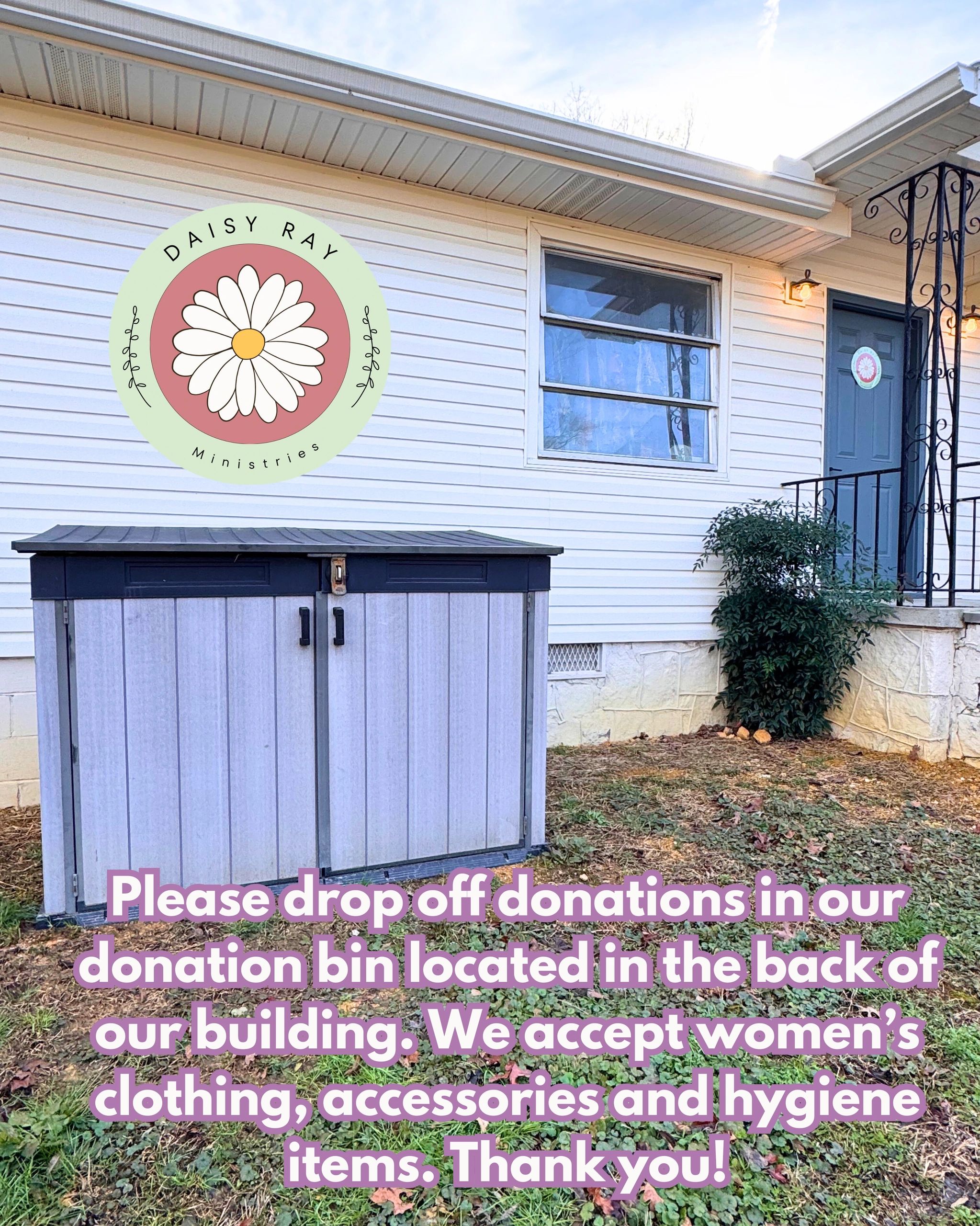 We are always accepting gently used women's clothing, casual shoes, bras and purses. All of our clothing is given out completely free to women in need. Clothing donations can be dropped off any day of the week. Please leave donations in the donation bin around back.